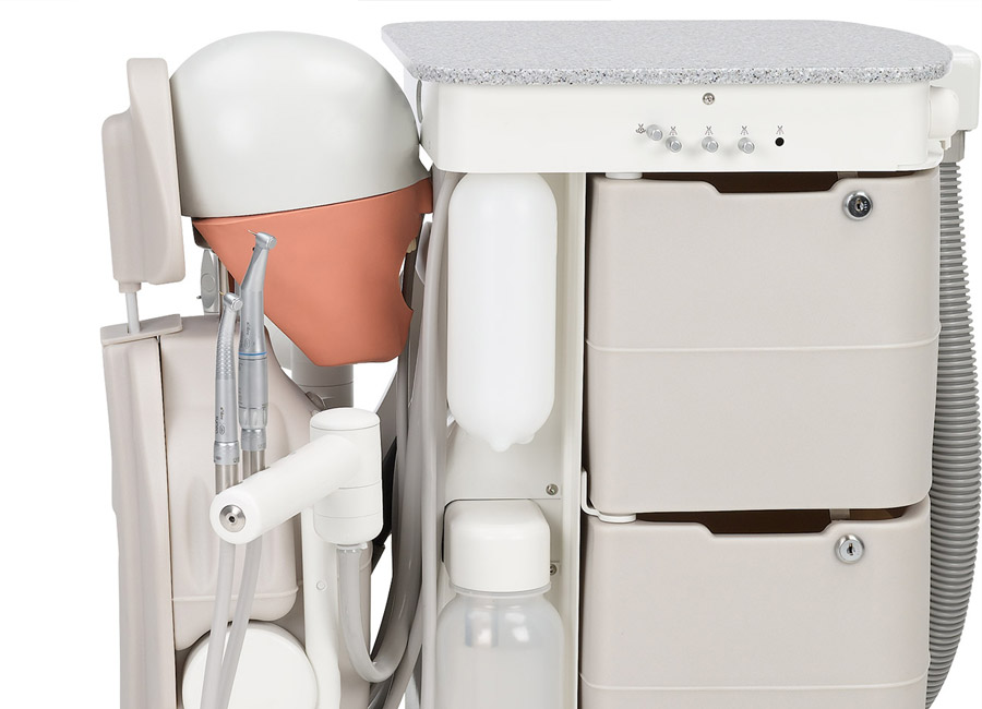 The A-dec Simulator Pro is a dental simulation system for preclinical training that helps students develop proper ergonomics, positioning, and clinical skills in a realistic environment. Designed for dental schools and teaching laboratories, it integrates essential dental instruments, supports multiple working positions, and is available in stationary or mobile configurations to suit different learning spaces.